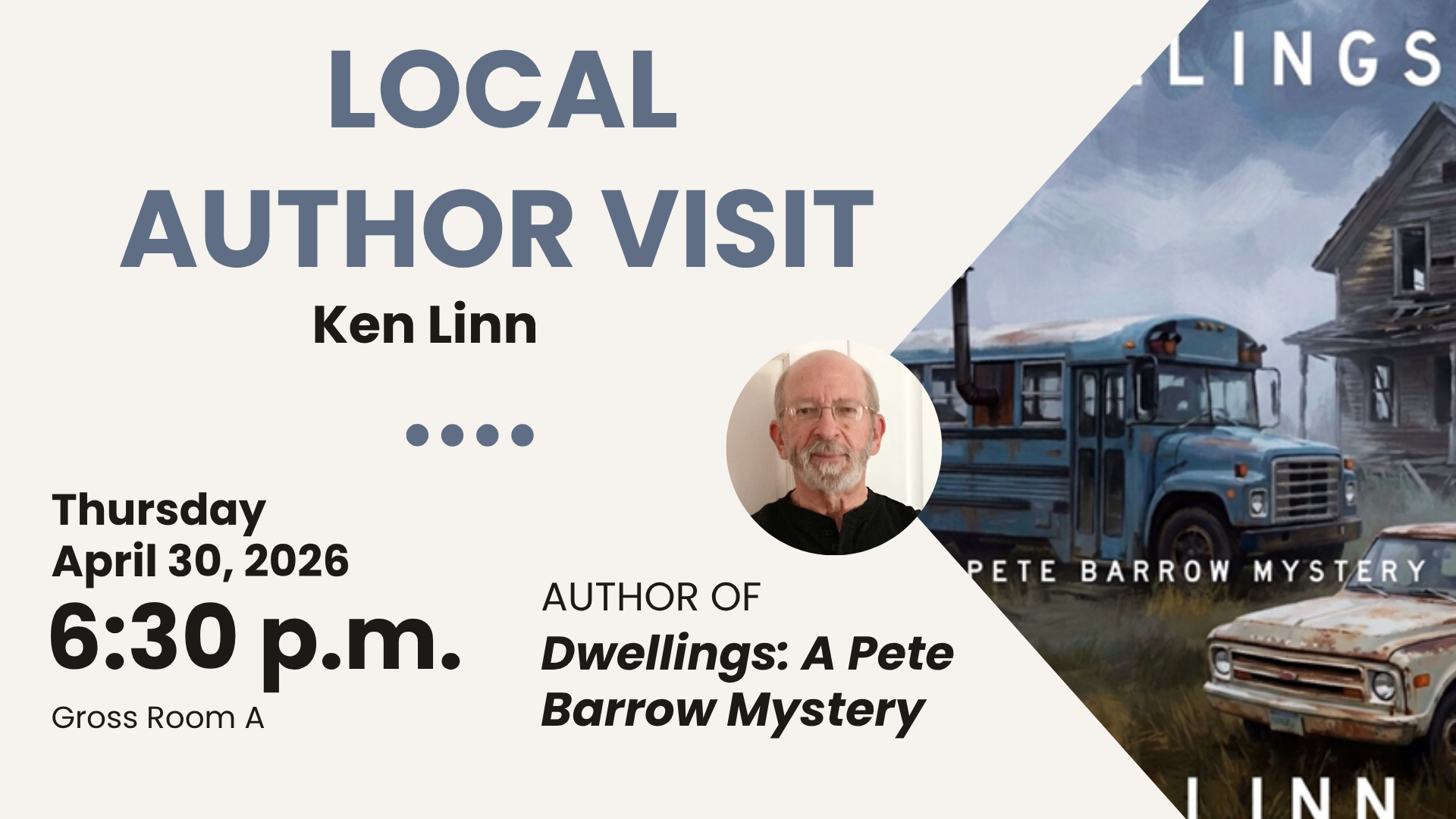 Preceding the novel, Dwellings, his three short stories featuring private investigator Pete Barrow and Sheriff Oscar Murphy have appeared in Alfred Hitchcock’s Mystery Magazine.