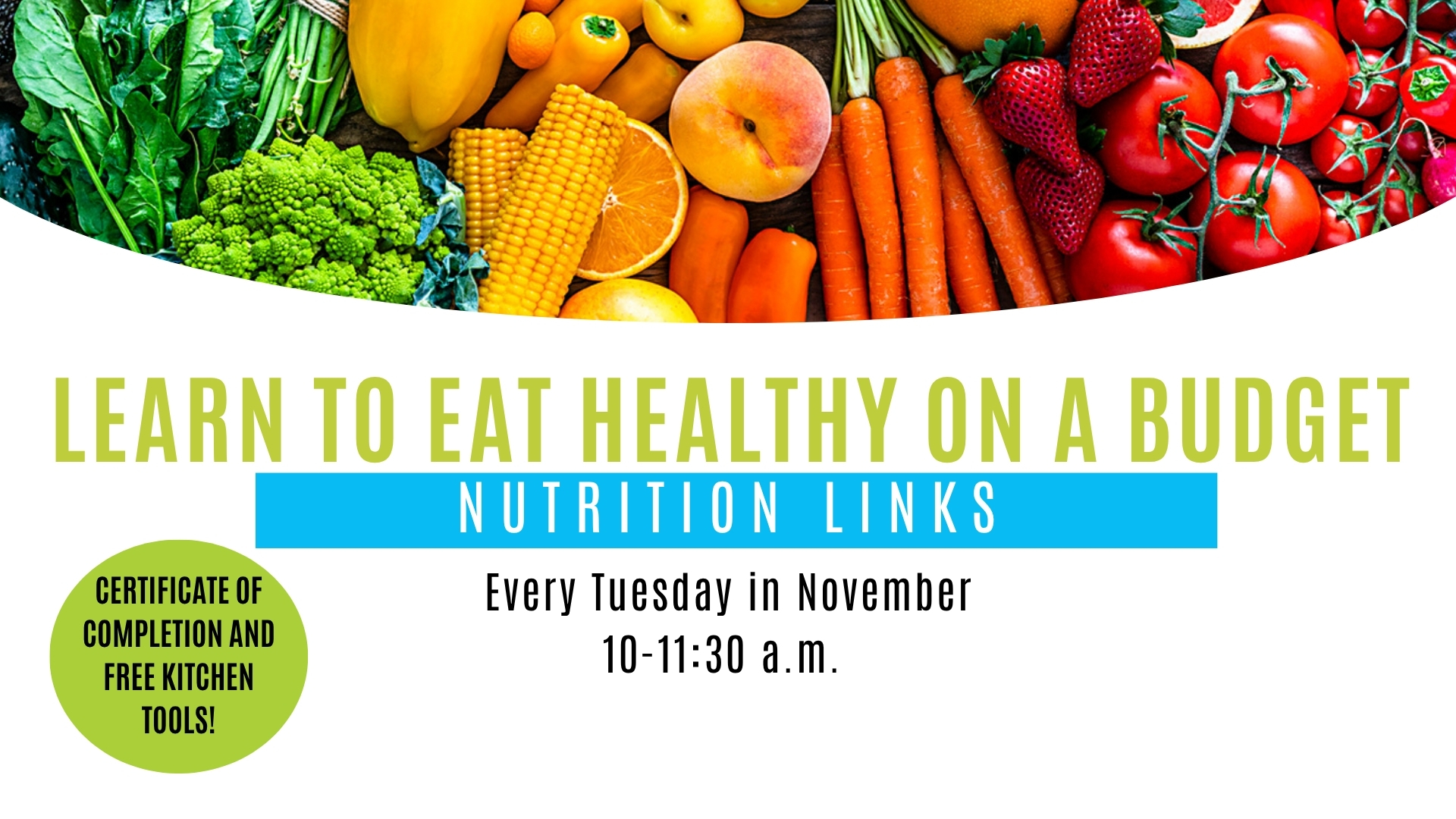 Join us every Tuesday in November from 10-11:30 a.m. for a free and informative series all about healthy, budget-friendly eating!