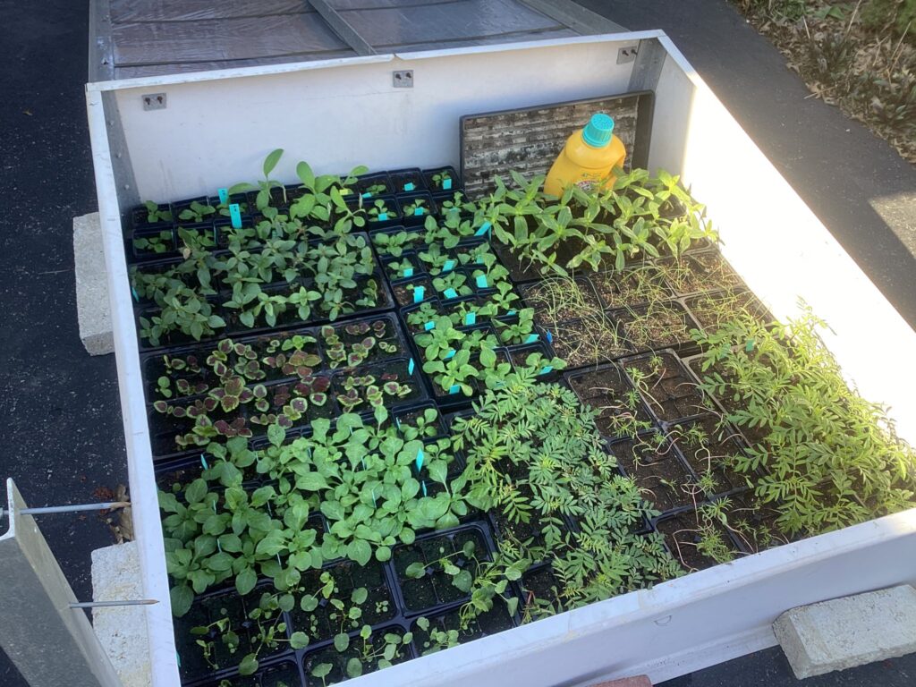 The cold frame on the driveway is almost full. We’ll be taking everything inside on Sunday 4/19/26 as the overnight temp is going to drop below freezing for 2 days.