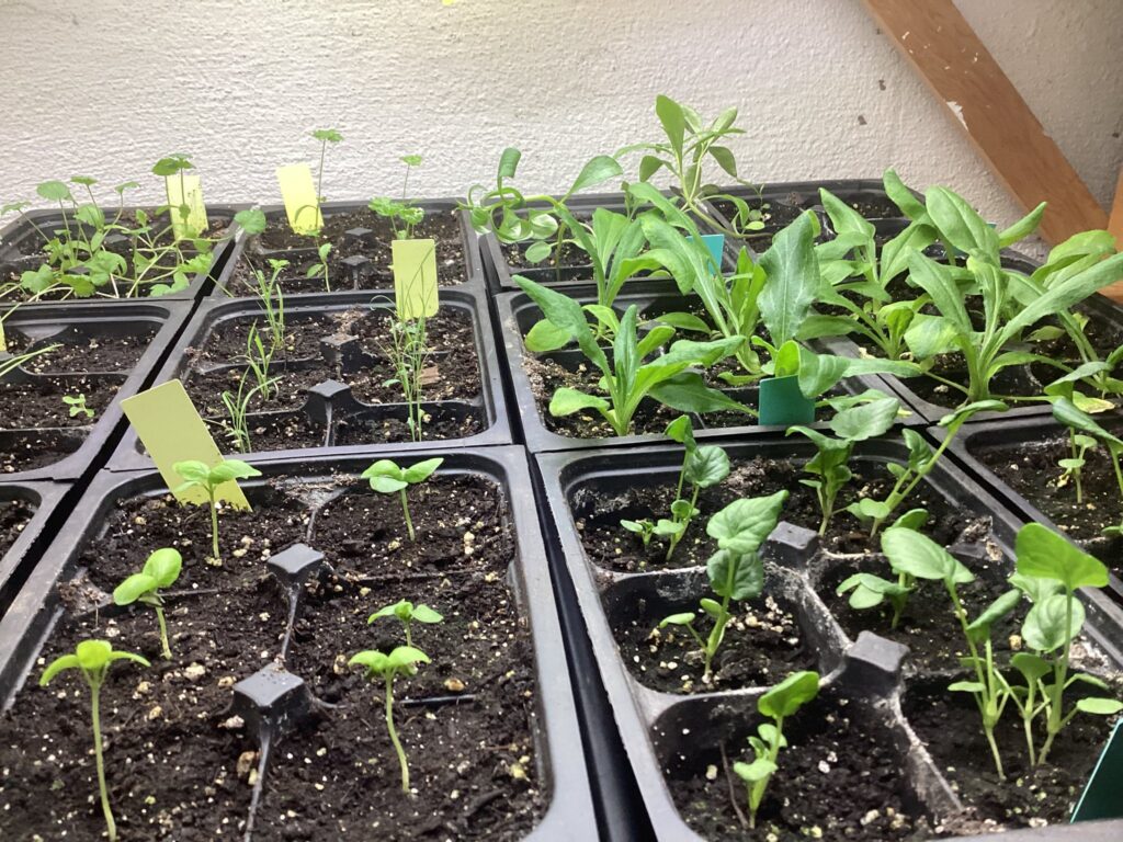 Waiting for the perennials to get a little bigger so I can put them in 3″ pots